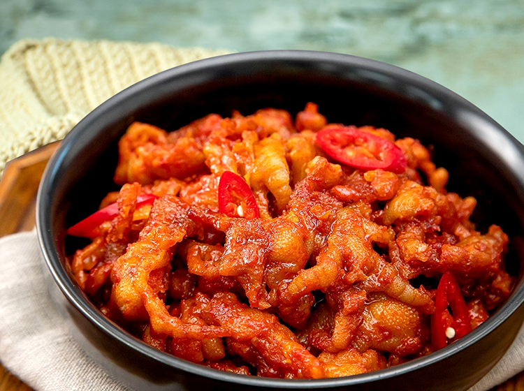“직화무뼈닭발” 벌크(진공팩) 제품은 직접 불에서 구워내어 은은한 직화향과 쫀득쫀득한 식감을 느낄 수 있으며, 오랜 노하우로 만들어 낸 하성만의 특제소스와 신선한 재료만을 사용했기 때문에 깔끔하고 화끈한 맛을 냅니다.