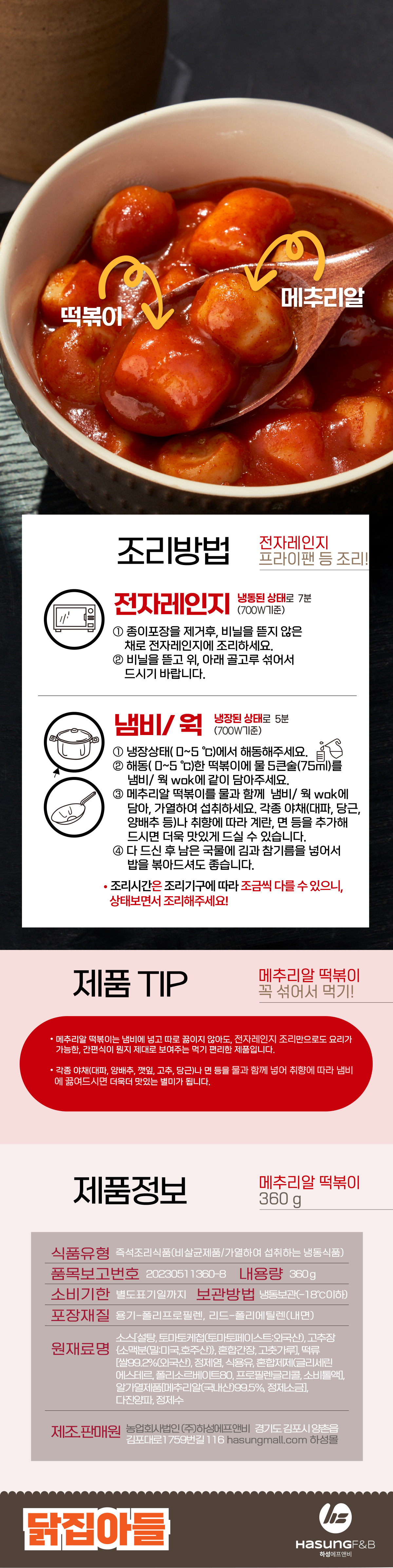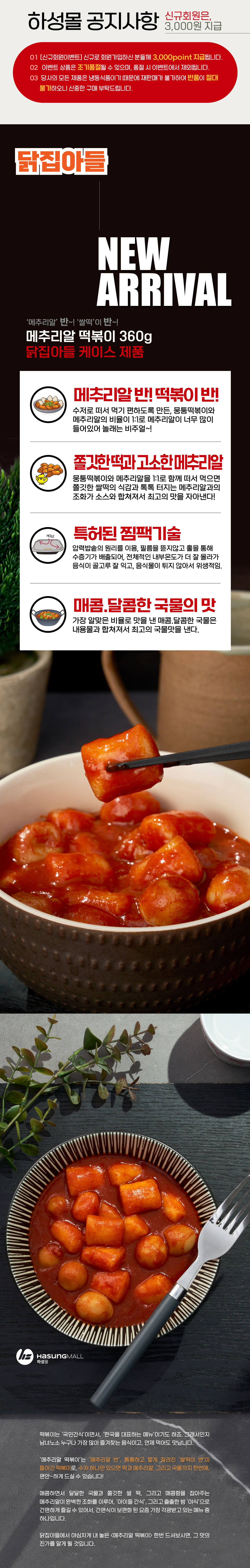 매콤하면서 달달한 국물과 쫄깃한 쌀 떡, 그리고 매콤함을 잡아주는 메추리알이 완벽한 조화를 이루어, ‘아이들 간식’, 그리고 출출한 밤 ‘야식’으로 간편하게 즐길 수 있어서, 간편식이 보편화 된 요즘 가장 각광받고 있는 메뉴 중 하나입니다. 닭집아들에서 야심차게 내 놓은 <메추리알 떡볶이> 한번 드셔보시면, 그 맛의 진가를 알게 될 것입니다.